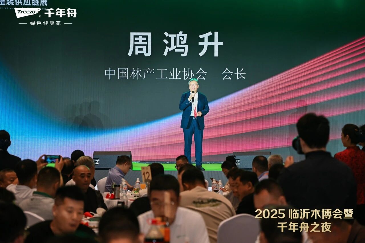 在晚上举行的晚宴上,千年舟作为建材装饰的领航企业及本次大会晚宴独家冠名单位,以“全球木业一家人暨千年舟之夜”答谢晚宴重磅亮相,与业界同仁共筑行业新篇章。千年舟集团执行总经理田茂华出席并发表致辞,与所有来宾共襄盛宴。