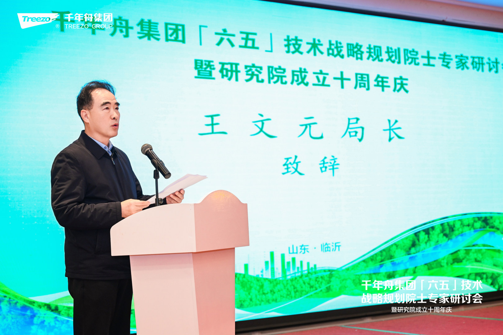 临沂市企业家协会党委书记、秘书长王文元对千年舟集团研究院成立十周年并取得丰硕成果表示祝贺!他表示,木业是临沂的传统产业、优势产业、看家产业,过去十年千年舟在全国木业行业起到了标杆作用,未来期待政企携手推动区域林产工业协同升级,把“板材之都”的招牌擦得更亮,用得更好。
