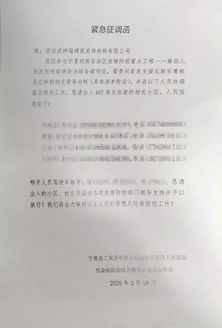 随着新冠病毒疫情的不断发展和蔓延,宁夏版“火神山医院”——宁夏建工集团有限公司自治区第四人民医院传染病防治综合楼应急改造项目建设牵动着每个人的心。为全力支持项目施工,2月10日,千年舟西安服务商齐树佳临危受命,火速驰援宁夏版“火神山”建设所需要的板材、石膏板及轻钢龙骨等材料。