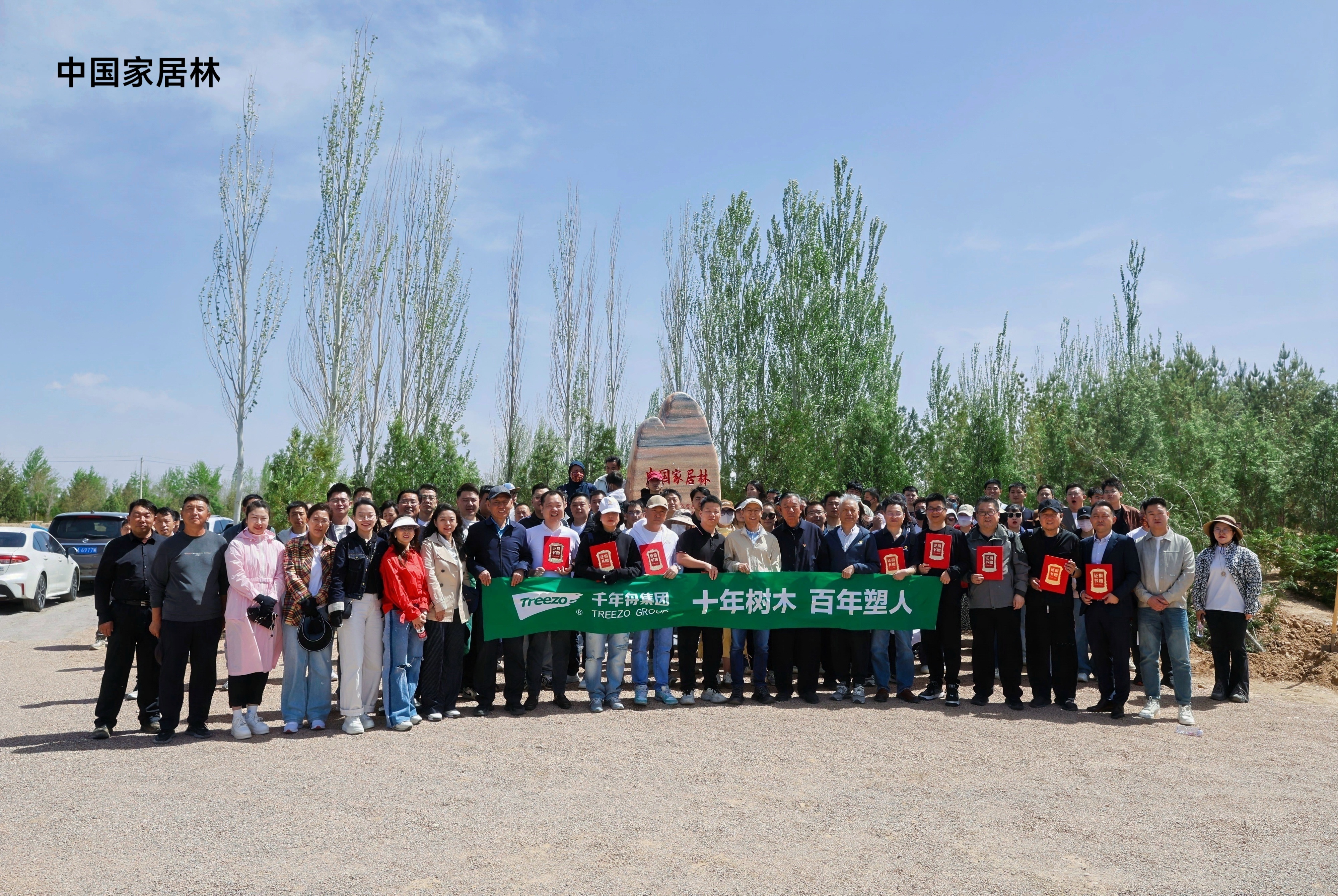 为响应国家号召,履行企业社会责任,4月29日,千年舟集团与TATA木门、展辰、博洛尼、威法、东方雨虹、顶立、斗芽门锁、中国木材与木制品流通协会携手宁夏沙漠绿化与沙产业发展基金会,共同参与在宁夏银川灵武市沙漠戈壁上主题为“万木同心,退沙绿生”的“中国家居林,宁夏沙漠绿化公益行”植树治沙活动。