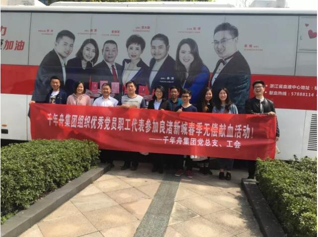 3月30日上午,在千年舟集团党总支、工会的号召和动员下,集团总裁办、行政部、聚艺、集采、仁和工厂、板材供应部等杭州地区各分子公司优秀党员职工代表踊跃报名参加良渚街道春季无偿献血活动。