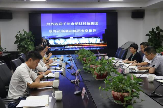 8月20日下午,千年舟集团党总支书记、副总裁毕海明,集团两红党支部书记、副总裁陈卫,集团工会主席万春梅,集团人力资源部经理傅毅等一行5人慕名前往民建会员企业——滨和集团考察学习党建、群团及公益事业等工作。