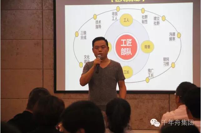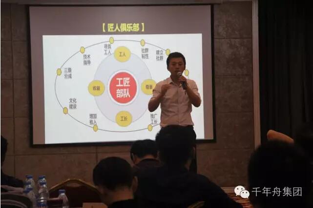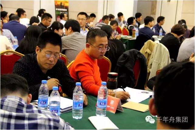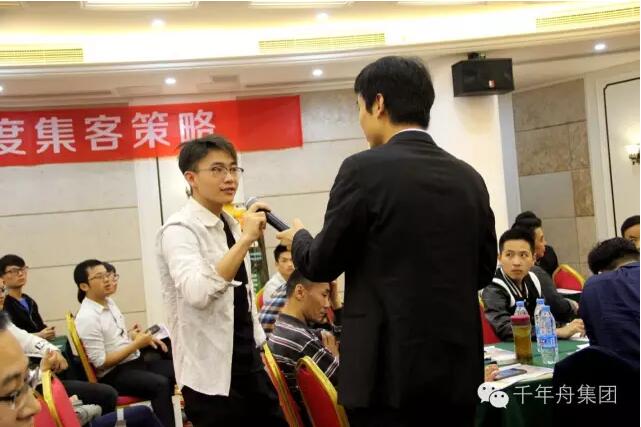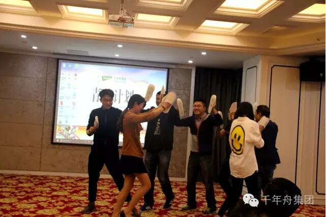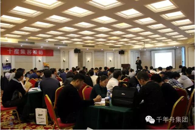 音乐响起,千年舟集团商学堂罗老师闪亮登场,经销商培训大会正式开始了,在罗老师的带动下,全场欢腾,高潮迭起。