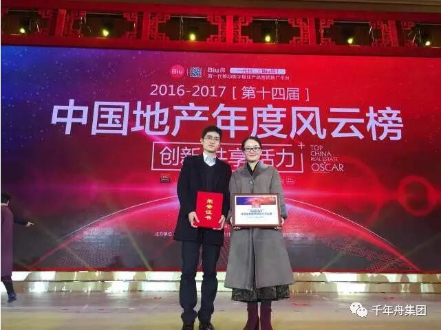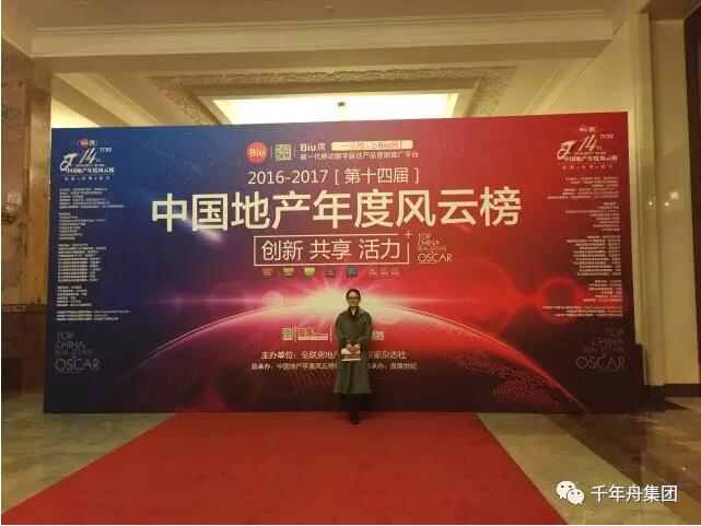 千年舟集团荣获中国房地产环保家居板材首选实力品牌暨2016-2017第十四届中国地产年度风云榜部品榜年度大奖