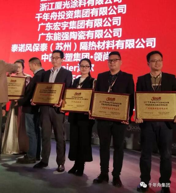 热烈祝贺千年舟集团荣获 “2017中国房地产开发企业500强首选绿色健康家居供应商”大奖