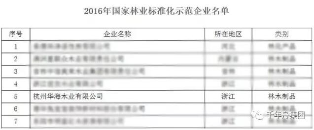 热烈祝贺千年舟入选2016年国家林业标准化示范企业
