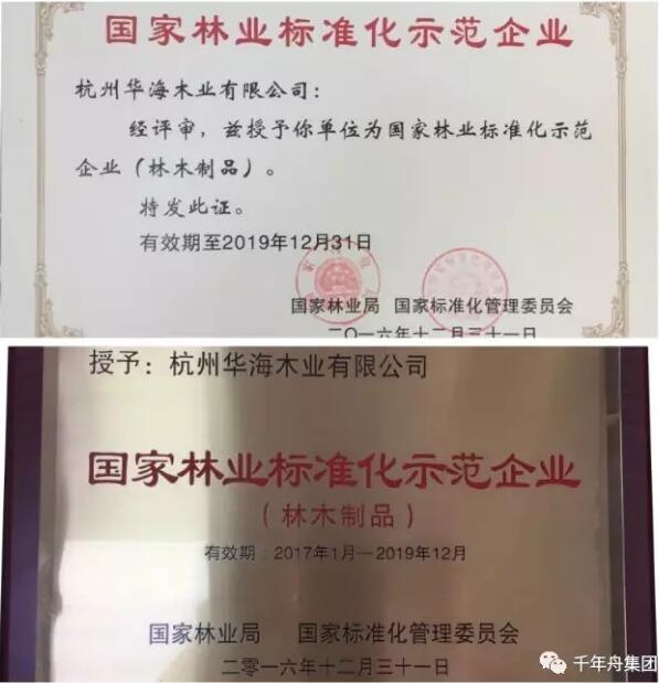 按照企业自愿、政府引导的原则,在省级林业和质监主管部门的推荐下,经专家评审,杭州华海木业有限公司被国家林业局和国家标准化管理委员会确定为2016年国家林业标准化示范企业之一。