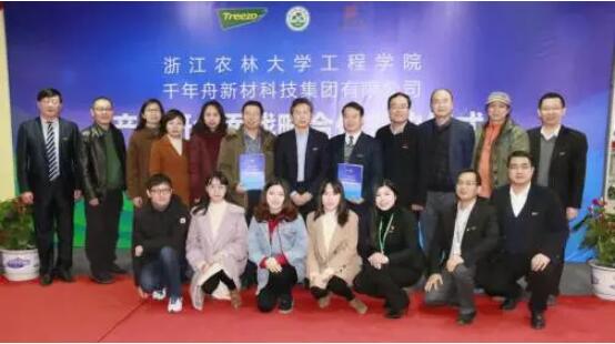 “12月12日,千年舟新材科技集团有限公司与浙江农林大学工程学院签订《党建+产学研全面合作协议书》。双方就成立产学研基地、技术研发中心、企业实验室、人才培养与扶持、形象提升与品牌打造、党政建设等方面达成共识并签约。”