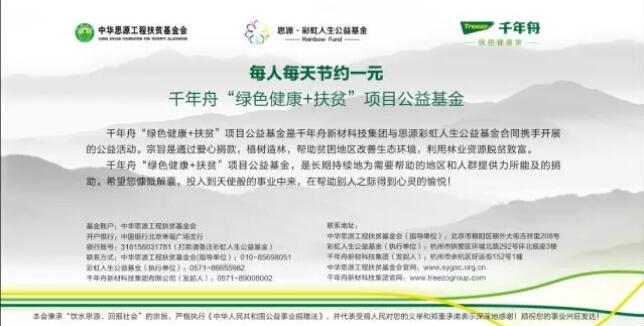 投入千年舟绿色健康+扶贫,让慈善得到传承,让大爱温暖人间,让品牌更有温度,千年舟人在行动!也希望汇集更多人的力量,让更多人受益。