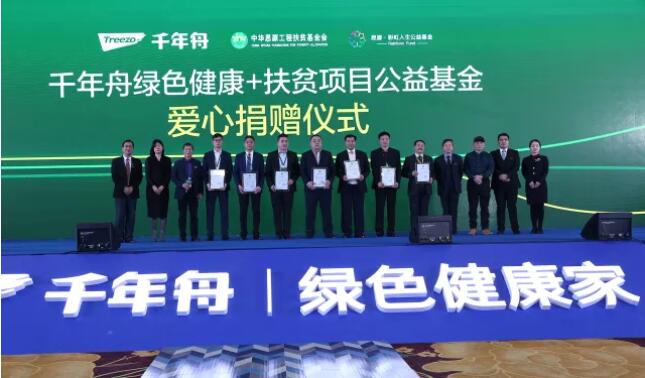 在2018年1月10日千年舟品牌战略发布会现场,“绿色健康+扶贫”公益项目首次对外公布,就得到了现场千年舟全国供应商、服务商及当场的嘉宾、媒体人士的积极响应,踊跃捐赠;现场募集善款逾100万元。会议现场还成立了千年舟绿色健康+扶贫公益小组,由陆董亲自挂帅,担任组长,践行公益。
