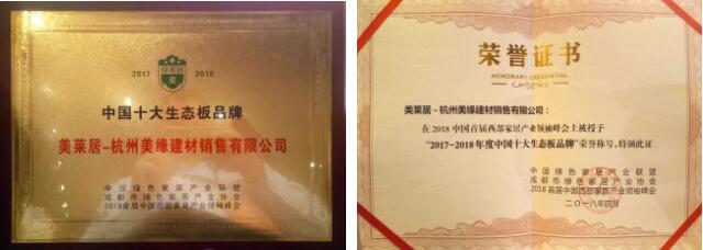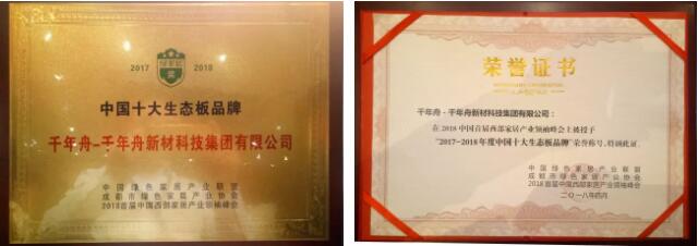 千年舟、美莱居双双获颁“2017-2018年度中国十大生态板品牌”大奖