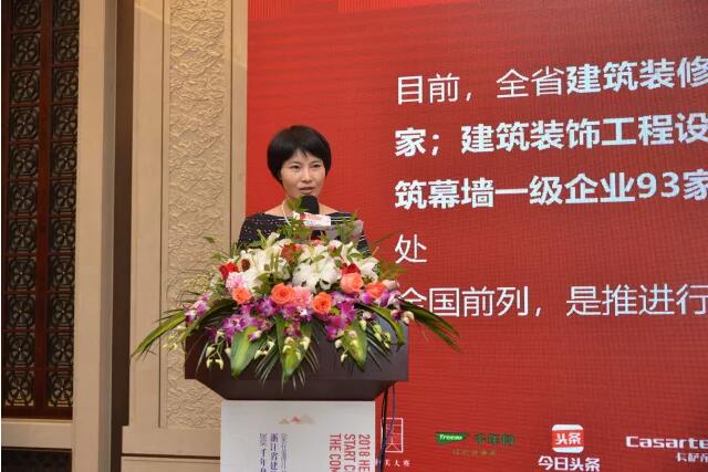 上海市装饰装修行业协会会长陈丽表示,很高兴受邀参加本次活动,江浙沪是一家,上海、浙江两地一直保持良好联系。浙江省建筑装饰千年舟?设计和美大赛的成功举办使浙江走在了全国前列,希望广大参赛设计师们积极引领正能量,以诚信质量服务走天下。