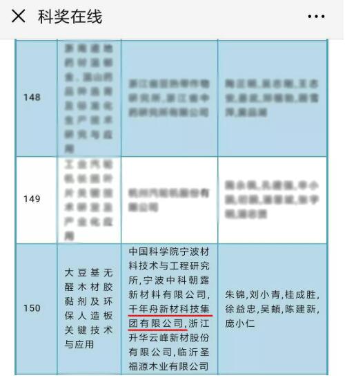 8月20日,2018年度浙江省科学技术奖行业评审结果公布。由千年舟新材科技集团有限公司等联合申报的《大豆基无醛木材胶黏剂及环保人造板关键技术与应用》项目,通过浙江省科学技术进步奖三等奖行业评审。