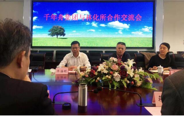 重阳节前夕,余杭区科协主席吴健、余杭区科协学会部部长沈琳、余杭区科技馆馆长、余杭区院士专家服务中心主任汤凌,千年舟集团副总裁兼党总支书记毕海明一行拜访了坐落在六朝古都南京的中国林科院林化所。林化所出席技术合作交流会的专家领导有中国工程院院士蒋剑春、书记黄立新、副所长房桂干、副所长刘军利、生物质材料化学研究室主任王春鹏和成果转化与推广处主任刘明山。会议由刘军利副所长主持。