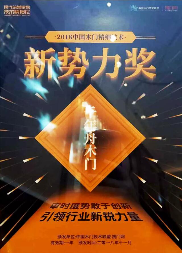 审时度势,引领行业 | 千年舟木门荣获“木门精细技术新势力奖”