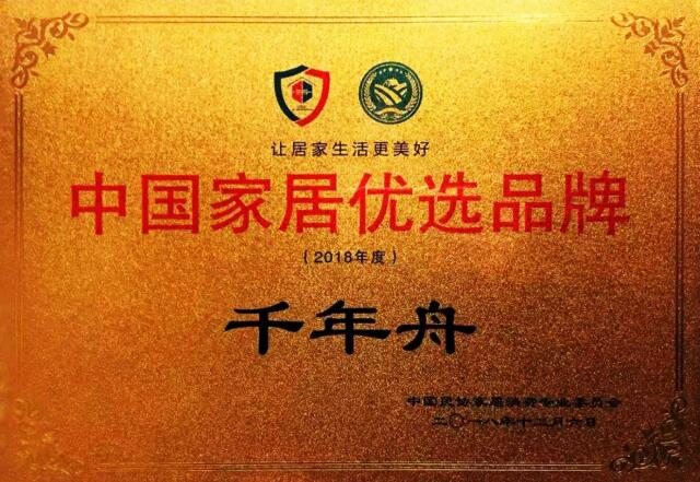 此次入选“中国家居优选品牌”,将极大地提升千年舟品牌知名度和美誉度,鼓励我们不忘初心,朝着“绿色健康家”砥砺前行!