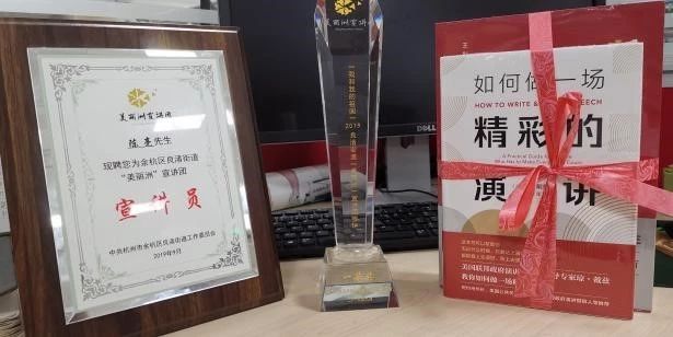 2019年,余杭区良渚宝地申遗成功,又正值新中国成立70周年,良渚街道特开展“我和我的祖国”宣讲活动,下辖企事业单位党员同志纷纷报名,光初赛人选就多达120人,其中就包括千年舟集团党委服务链支部宣传委员、优秀讲师陈亮。