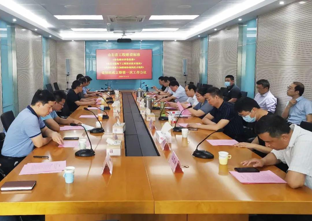 2020年6月6日,千年舟集团受邀参加山东省工程建设标准《绿色建材评价标准》编制。本次会议由山东省住房和城乡建设厅、山东省建筑科学研究院有限公司组织,会议地点在山东济南。会上就标准的编制背景、大纲进行了讨论,并明确各参编单位成员分工,讨论初稿内容,制定下一阶段工作目标。会上,山东省住房城乡建设厅建筑节能与科技处四级调研员陈恒亮、山东省工程建设标准定额站标准室主任张少红两位领导出席。