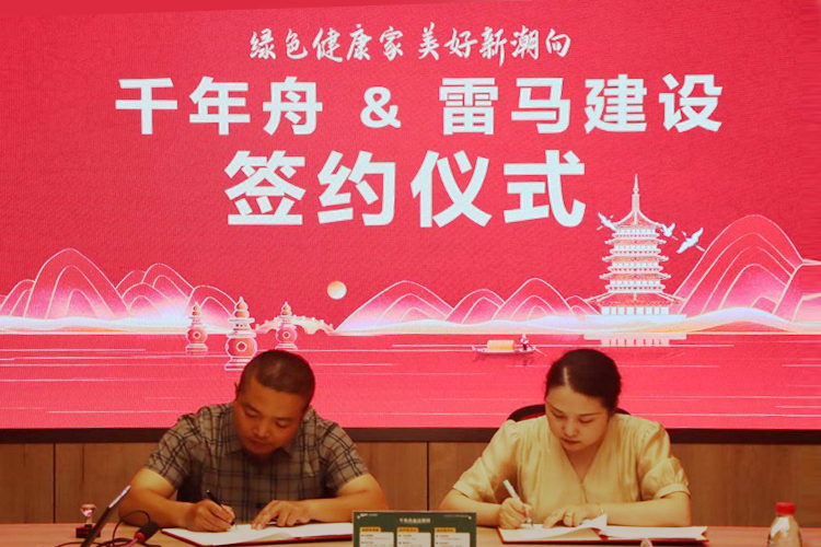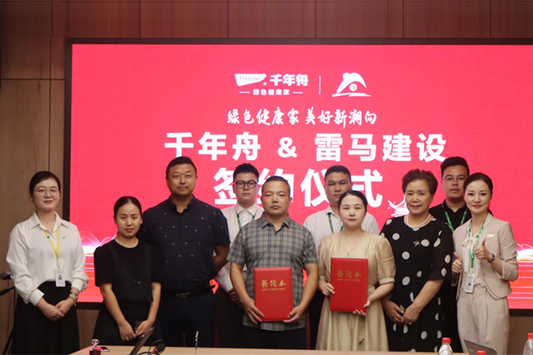 8月17日,千年舟新材科技集团股份有限公司与杭州雷马建筑科技有限公司在千年舟集团总部举行了战略合作签约仪式,强强联合,携手前行。后续双方将同心同向、同愿同行,于家装工程领域中共辟合作共赢的璀璨进路。