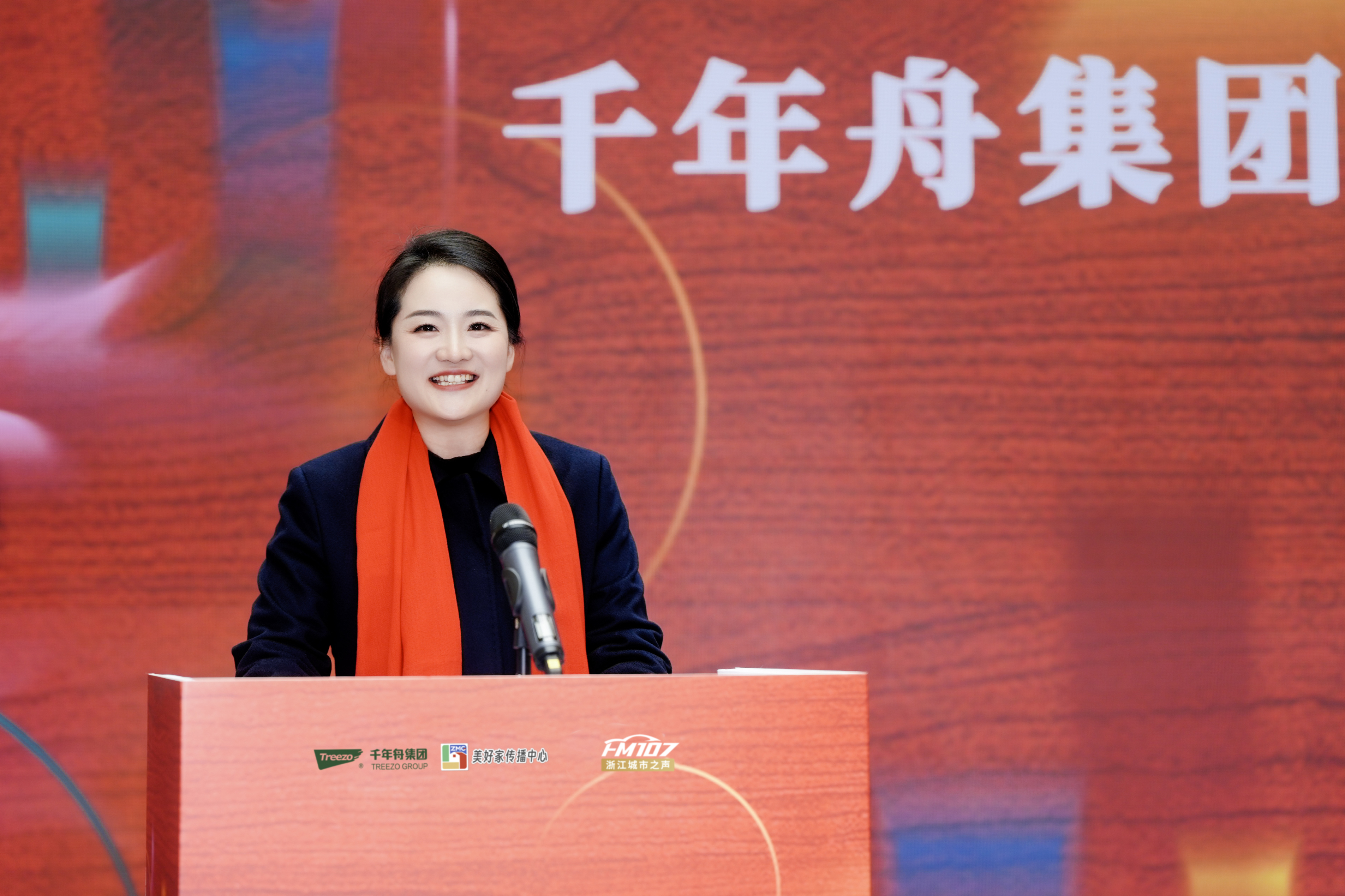 午后时分,与会嘉宾陆续莅临。伴随着温馨的签到互动,活动在主持人热情洋溢的开场与介绍中正式启幕。千年舟集团执行总经理田茂华女士在致辞中,不仅诠释春节“福”文化的深厚意蕴,更阐述了千年舟“绿色健康家”的品牌初心:“我们深信,一个由环保材料筑就的家、一处充盈健康与美的空间,本身就是一种最踏实、最恒久的‘福气’。”这份初心,既寄托于活动传递的新春祝愿之中,也凝聚在品牌对“绿色健康家”理念的持续践行里。田总还特别介绍了千年舟《2026寻福记・让非遗回家》系列行动,诚邀众人共赴山河古城,探寻非遗与民族文脉中的福韵故事,让传统文化在行走中重焕生机。