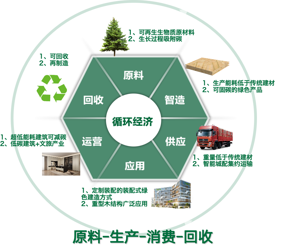 双碳:坚持以竹代木、低碳循环发展,践行双碳战略,实现取之自然、用之自然、归之自然的绿色发展模式。