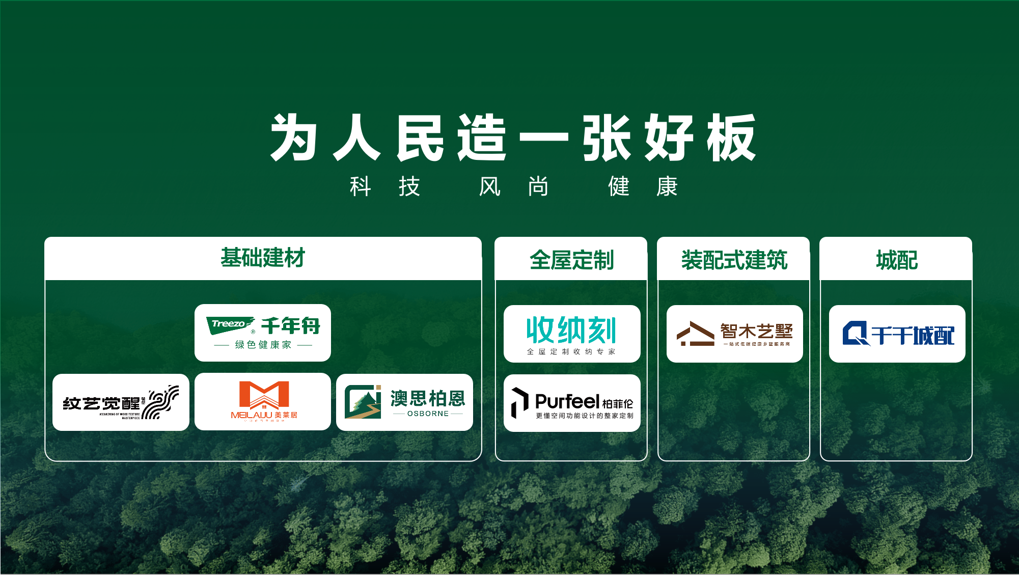 生态:构建材、板、柜、居、筑全产业链生态,打通基材到空间应用全链路,提供一体化绿色家居系统解决方案。