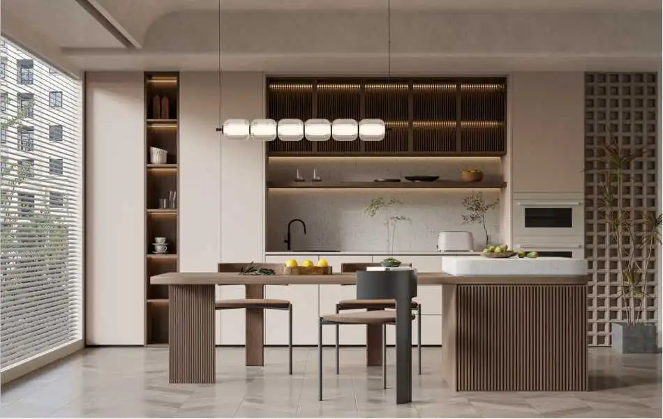 竹材的创新应用成为千年舟践行绿色理念的关键抓手。依托于技术创新,千年舟大大提升了竹材利用率,并在此基础上推出竹芯防水力饰板-P10型 SPB。这款板材堪称技术创新的集大成者:优选3-5年生天然竹材,通过科学配比增强板材硬度与韧性;采用高压微孔密实技术,使24小时吸水厚度膨胀率≤3%,远优于普通刨花板 10%-15% 的水平;纳米级防霉剂渗透技术更让板材对黑曲霉、青霉等霉菌具备长效抑制作用,完美适配浴室、厨房等潮湿环境。